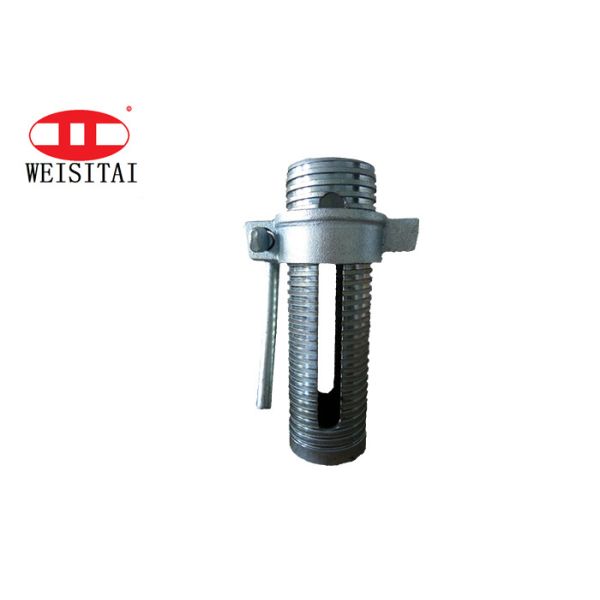 | Material: Q235 Steel Finish:Original , Painted, Electro Galvanized,HDG Color:Original Self Color, Silver or golden color Craft: Rolling thread or CNC thread Strength:40KN Application: Connect the inner pipe and outer pipe of steel props | |||||